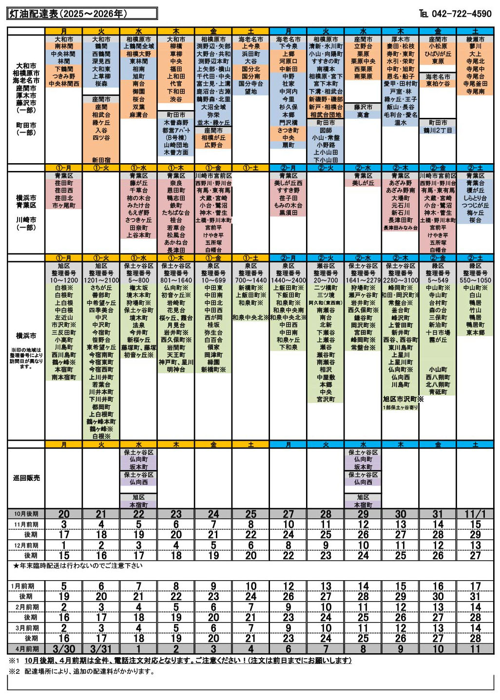 配達エリアは灯油配達表をご覧ください。